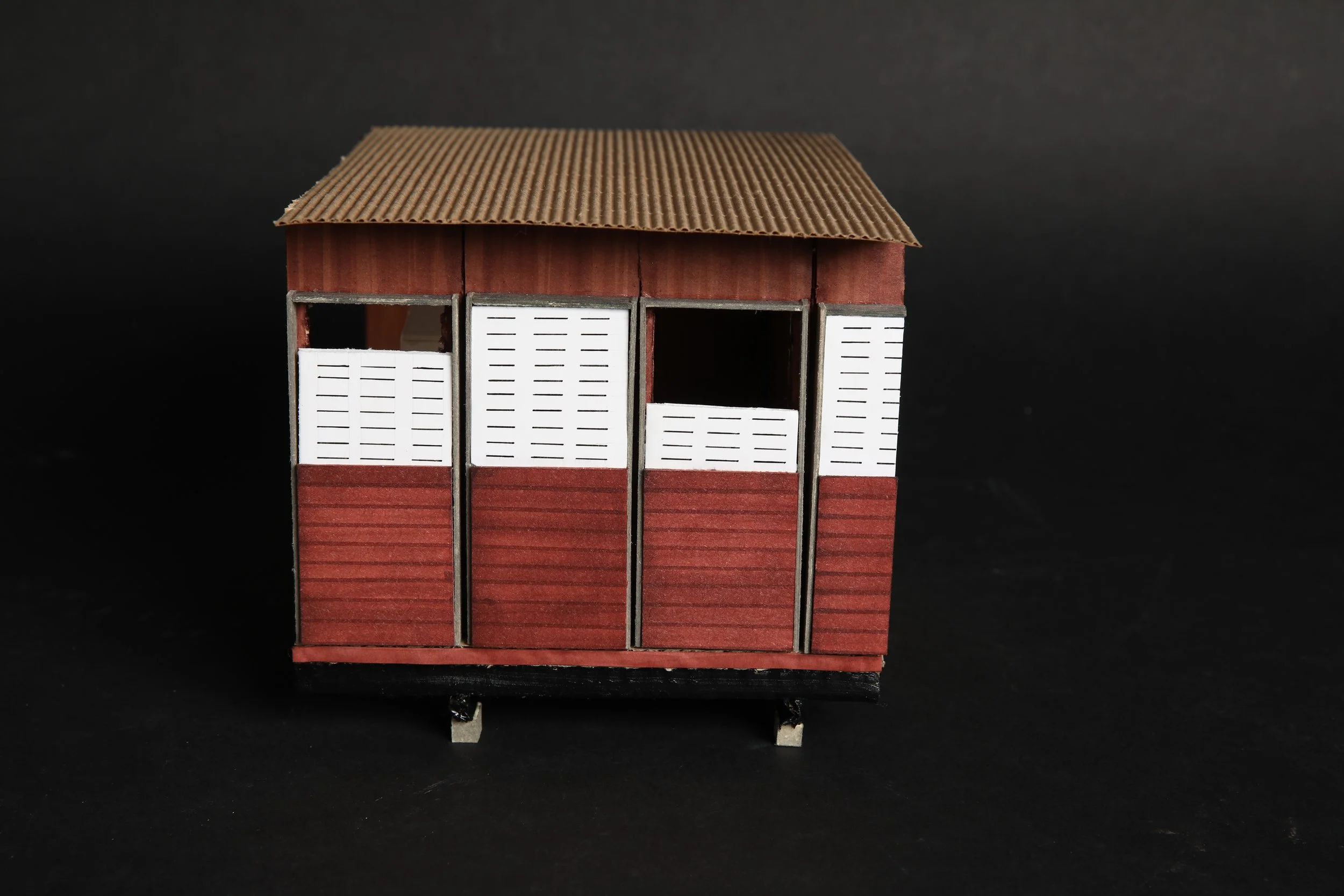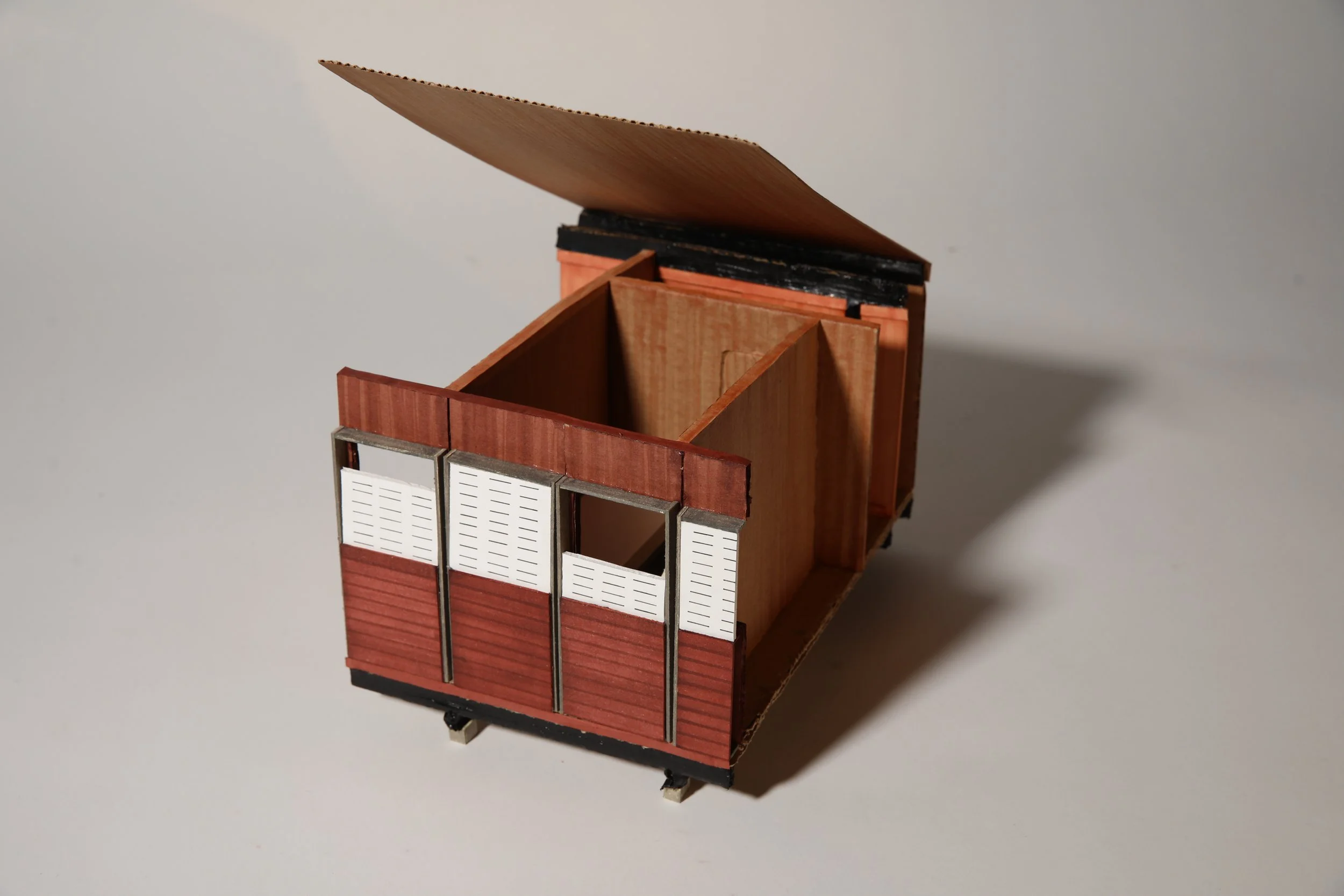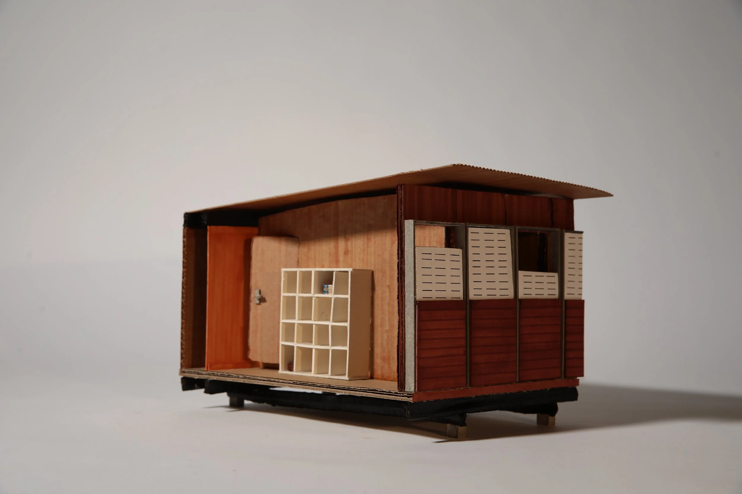 By studying the house’s structural grid, movable partitions, and modular components, the model highlights how flexible interiors are created within a rigid industrial framework. Walls, shutters, and storage elements are treated as adaptable systems rather than static boundaries, reinforcing the idea of space as something dynamic and reconfigurable.