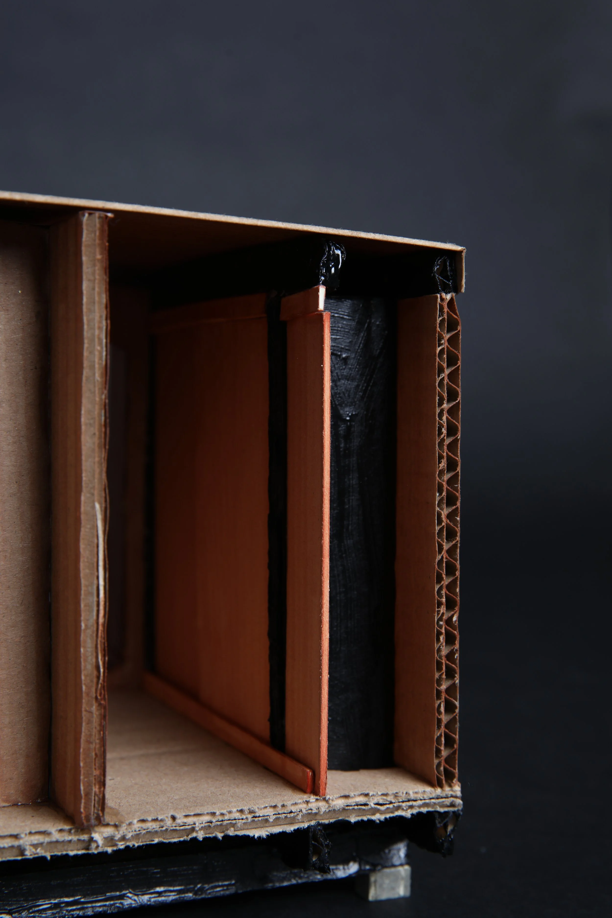 The house was divided into eight sectional modules, with each group responsible for designing and constructing one segment of the overall model. Working as part of a collective system required precise coordination, shared dimensions, and a deep understanding of how each section connects structurally and spatially to the whole. This approach emphasized the importance of sectional thinking in interior design, revealing how construction, circulation, and spatial relationships are articulated through the cut rather than the façade.