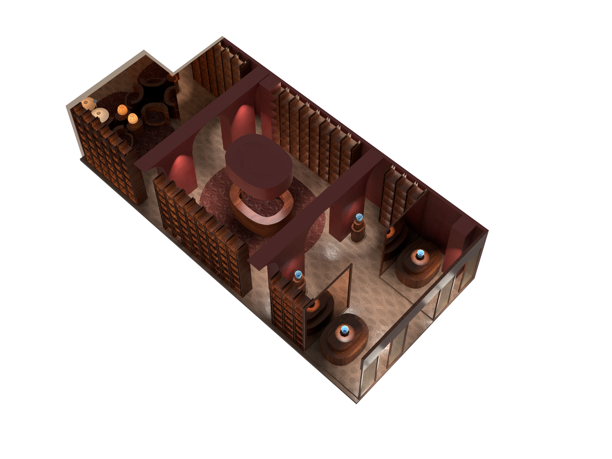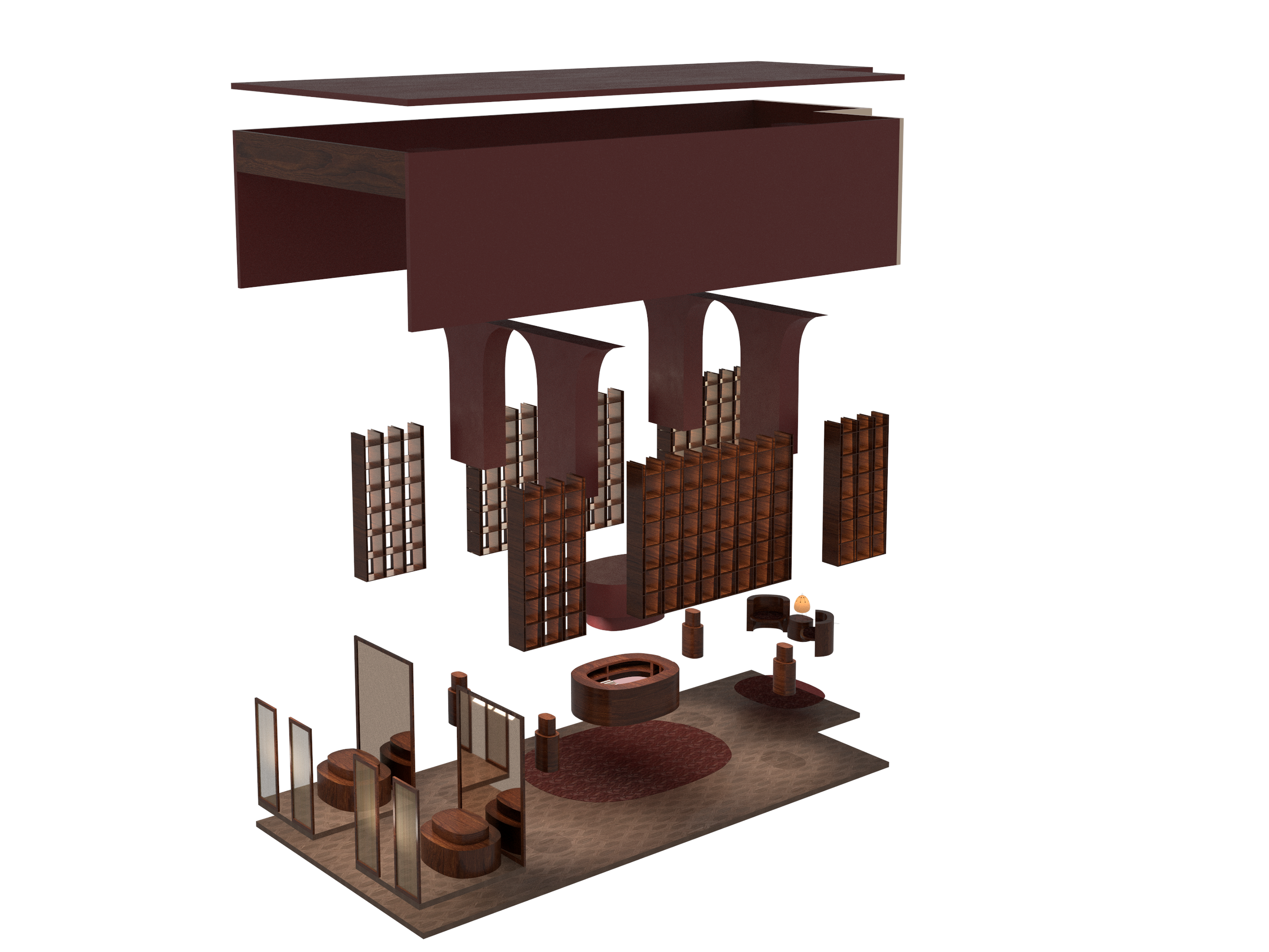An immersive retail experience inspired by Jungian psychology, the Japanese concept of Makoto, and the layered nature of dream and reality. This theatrical interior invites visitors to journey inward - through shadow, material, and scent - where home décor becomes storytelling. Terracotta reds, golds, and dark wood reflect Diptyque’s refined identity, reimagined to evoke memory, emotion, and presence. My personal reflection of my designing style. Trully conceptual, deep in meaning and ambience, cozy and misteriously inviting. With raw materials, circular shapes and buzzing heart in the space.
